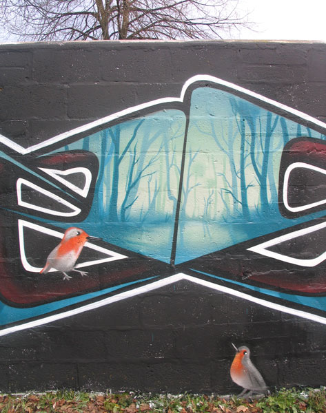 Winter is most definately here. Cold tins of spray-paint are not the best thing to be holding in this weather! For some reason i never remember to carry any gloves with me either… 11 years on you might think i’d have sussed that one out!